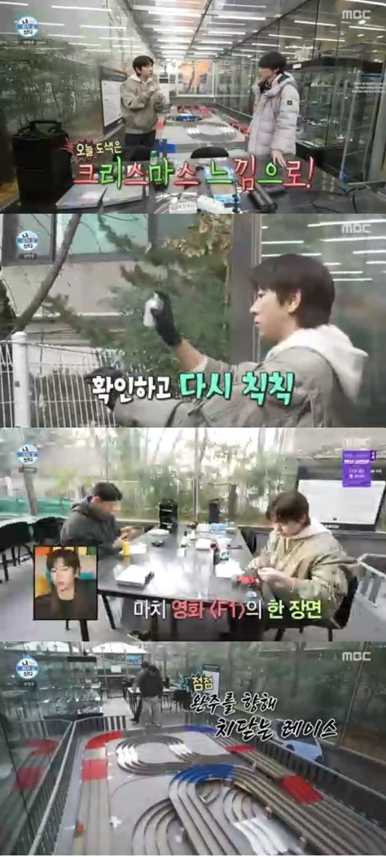 이수증은 친구 정찬빈을 만나 영화 'F1'의 한 장면처럼 미니카 모터에 기름칠을 하고 각종 장비를 점검하는 모습을 보여줬다.