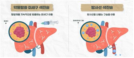 경동맥화학색전술(TACE)은 암세포에 연결된 혈관에 항암제를 주입한 뒤, 색전 물질로 혈관을 막아 암세포 괴사를 유도하는 치료법이다. 작은 크기의 종양은 수술만큼 치료 효과가 좋다. 최근에는 항암제가 담긴 작은 구슬을 주입하는 약물방출 미세구 색전술, 방사선을 내뿜는 작은 구슬을 이용한 방사선 색전술이 도입되면서 부작용을 줄이고 암세포를 더욱 정교하게 공격하고 있다.