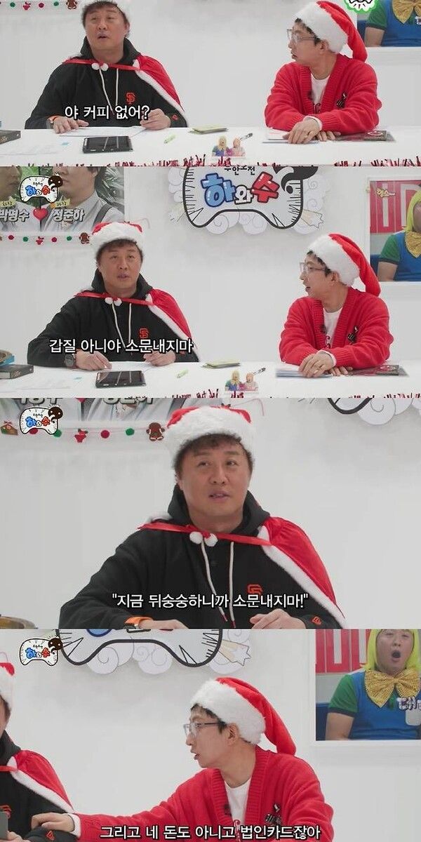 정준하는 "저는 거기까지가 끝이었는데 박명수가 커피 없냐고 하더라. 그래서 그 분이 또 커피를 사가지고 오셨다"고 했다.