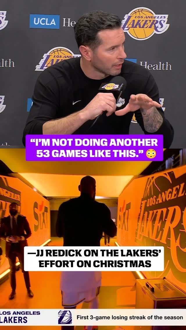 미국 매체 ESPN은 28일(한국시간) “레이커스는 팀 미팅으로 재조정을 찾으려 한다”며 “휴스턴 로키츠와의 크리스마스 매치서 96-119로 패배한 뒤, J.J. 레딕 감독은 공개적으로 팀의 노력을 질책했다. 레이커스는 최근 답보다 질문을 더 많이 받는다”고 조명했다.