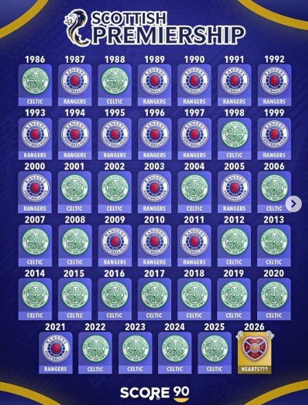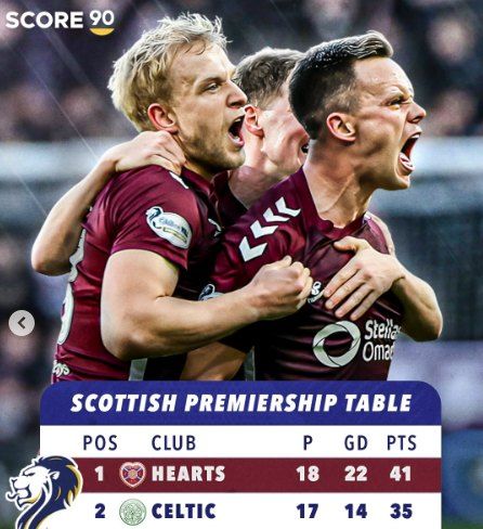 아직 잔여 경기가 많이 남아 있지만 많은 축구 팬들이 하츠가 1960년 이후 66년 만에 리그 우승을 차지하면서 셀틱과 레인저스의 40년 양강 체제를 깰지 주목하고 있다.