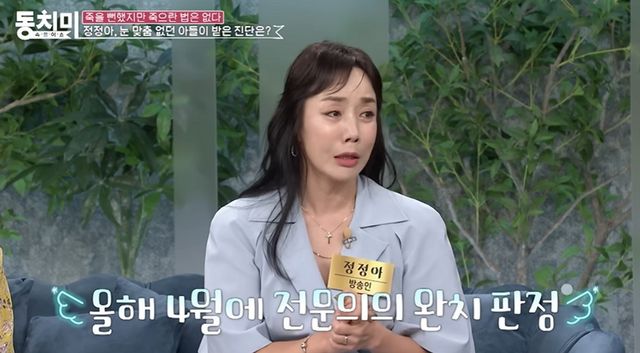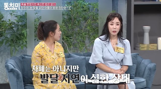 앞서 정정아는 지난해 7월 방송된 MBN ‘속풀이쇼 동치미’에 출연해 아들의 발달 문제로 겪었던 지난 시간을 솔직하게 털어놓았다. 그는 “아들의 자폐 진단을 도저히 받아들일 수 없어 다른 병원에도 갔는데 자폐와 지적 장애 진단을 받았고 폭력성도 너무 심해 내 얼굴과 손등에 피딱지가 없는 날이 없었다”라고 고백해 안타까움을 자아냈다. 이후 영상을 촬영해 병원을 다시 찾았고 자폐가 아닌 심각한 발달 지연 상태로 이대로 두면 성격 장애로 이어질 수 있으며 심한 폭력 경험이나 부모의 무관심으로 인해 생기는 결핍 장애라는 설명을 들었다고 전했다.