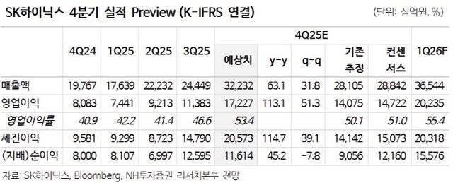 류영호 NH투자증권 연구원은 “예상보다 빠른 메모리 가격 상승으로 2026년 실적 상향 조정이 이어지고 있는 상황”이라며 “2026년 영업이익은 105.5조원으로 전년대비 133.1% 성장할 전망이다. HBM은 180.0억 Gb출하로 전년대비 37% 성장을 기대한다”고 설명했다.