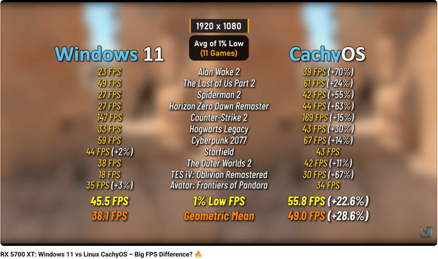 성능특화 리눅스인 cachyOS 최신 커널(6.17 커스텀)/MESA드라이버(25.3.1) 빠른 벤치에서