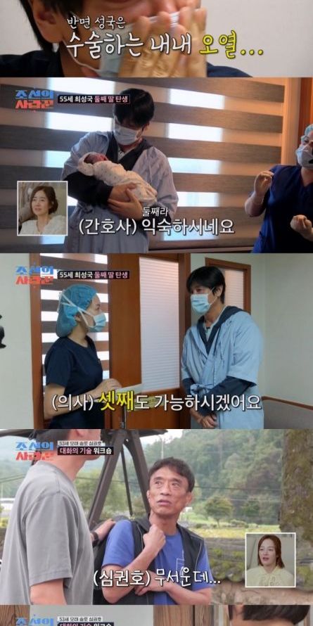 영상 속에서 처음으로 엄마와 떨어지게 된 최성국의 첫째 아들 시윤은 유달리 시무룩한 모습이었다. 할머니 집에 머물게 된 시윤은 "걱정 마세요"라며 엄마를 꼭 안았고, 최성국 부부는 아들의 대견한 모습에 눈물을 흘렸다. 그리고 최성국 부부는 둘째 출산을 위해 병원을 찾았다. 스튜디오에서 최성국은 "내가 조금 더 어렸을 때 아내를 만났더라면 좋았을 텐데..."라며 "내가 나이가 많으니까, 시윤이를 외동으로 키우고 싶진 않았다. 아내한테나 시윤이한테나 의지할 수 있는 존재를 만들어주고 싶었다"면서 '55세 아빠'의 현실적인 고민을 토로했다. 이제 갓 시험관 시술을 시작한 동갑내기 친구 심현섭도 격하게 공감했다. 제왕 절개 수술 중인 아내를 밖에서 기다리던 최성국은 예상보다 늦어지자, 초조함과 동시에 첫째 시윤이가 태어났을 때와 비슷하게 눈시울을 붉혔다. 스튜디오에서 최성국은 "갑자기 겁이 나더라. 아기한테나, 산모한테나 무슨 일이 있나 (아빠는) 알 수가 없지 않냐"며 당시 속내를 밝혔다.