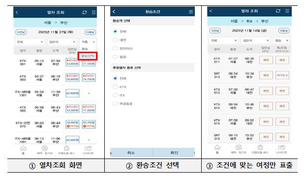 앞서 코레일은 지난 19일 ‘셀프 환승역 지정’ 기능을 도입했다. 코레일톡에서 개인 일정에 맞는 환승역과 열차를 직접 선택할 수 있다. 기존에는 출발역과 도착역만 직접 지정하고 환승역과 열차는 운행시간표를 기반으로 자동으로 추천됐으나 이번 서비스 도입으로 상황에 맞는 여정 설계가 가능해져 여행 편의가 향상 됐다.