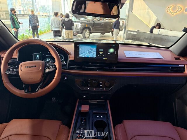 무쏘의 실내는 운전자의 조작 편의성과 안정성을 고려한 설계가 돋보인다. 12.3인치 디지털 클러스터와 내비게이션 디스플레이는 ‘아테나 3.0’ UI로 직관적인 정보 제공이 가능하며, 전자식 변속 레버(SBW)와 전자식 파킹 브레이크(EPB)는 센터 콘솔 공간 활용성을 높였다.