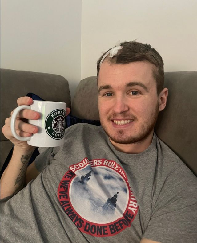 키어런 싱글러의 2023년 모습. 초기 증상이 감기와 유사해 대수롭지 않게 여겼으나, 이후 증상이 악화되며 뇌종양 진단을 받았다. @Abbie Henstock X 갈무리