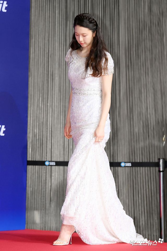 이날 김진경은 하이힐에 슬림한 롱드레스를 매치한 레드카펫 패션으로 등장했다. 은은한 광택의 아이보리 컬러 드레스는 몸선을 따라 자연스럽게 흐르며 단아하면서도 우아한 분위기를 완성했다. 특히 임신 중이라는 사실을 전혀 눈치채기 어려울 만큼 변함없는 모델핏과 안정적인 워킹을 보여줘 시선을 끌었다. 과한 장식 없이도 기품이 느껴지는 스타일링이 돋보였다는 반응이다.