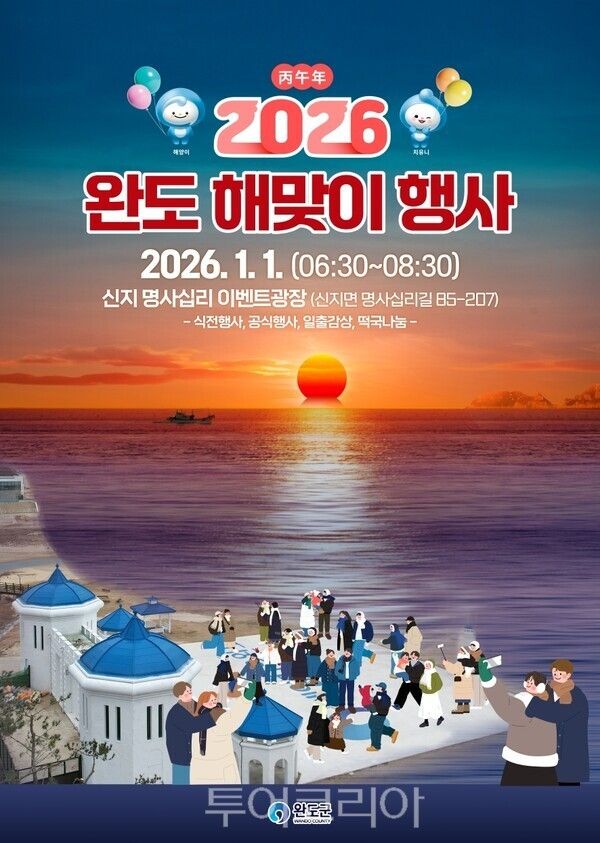 완도군은 2026년 1월 1일 오전 6시 30분부터 8시 30분까지, 신지 명사십리 이벤트 광장에서 ‘병오년(丙午年) 해맞이 행사’를 개최한다. 붉은 말의 해를 맞아 군민과 관광객이 함께 새해의 출발선에 서는 상징적인 자리다.