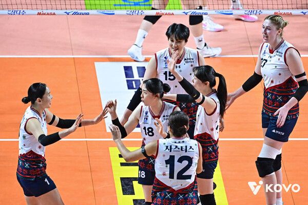 패배를 잊은 2위 현대건설(13승 6패·승점 38)은 선두 한국도로공사(15승 3패·승점 40)와 승점 차를 2까지 좁히며 거세게 압박했다.