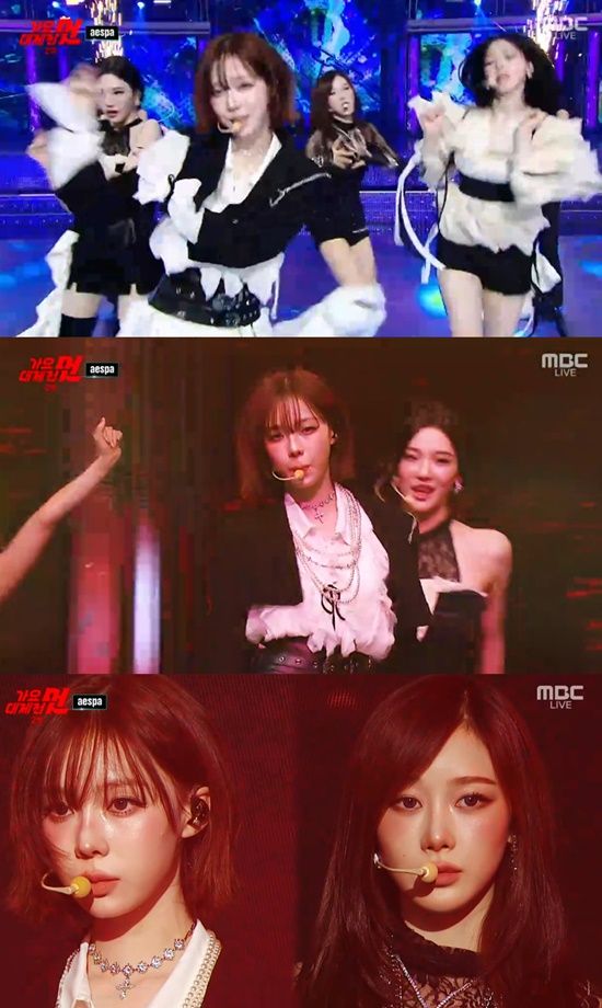 이날 에스파는 ‘킬 잇(Kill It)’ 무대를 선보였다. 강렬한 밴드 사운드가 인상적인 인트로에 이어 개성 강한 퍼포먼스를 펼쳤다.