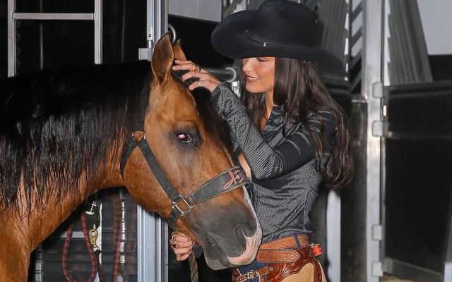 터틀넥 보디수트는 가격 미정, Loro Piana. 말 모티프의 헤드피스와 스타킹은 에디터 소장품.