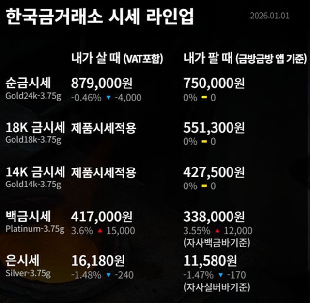 순금(24K) : 매입가 87만 9000원 / 매도가 75만 원