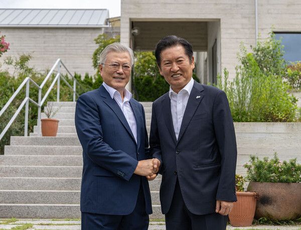 정청래 더불어민주당 대표는 1일 문재인 전 대통령을 만나 "전임 대통령으로서 여러 경험 등을 잘 살려 꽉 막힌 한반도 평화 문제를 풀어나가는 데 큰 가르침(을 주시고)과 역할을 해주실 것을 요청드린다"고 했다.