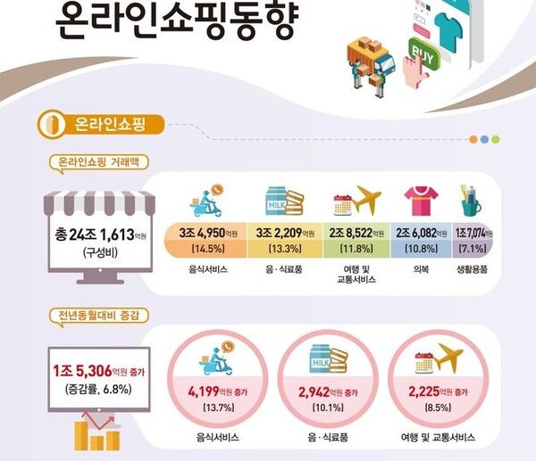 티메프 사태 여파로 직격탄을 맞았던 이쿠폰서비스도 전년 동월 대비 4.0% 증가하며 4개월 연속 플러스 행진을 이어갔다.