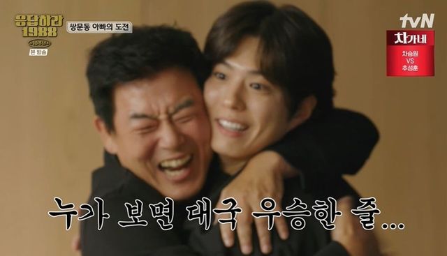 이날 첫째 날 마지막 게임은 ‘특명! 쌍문동 아빠의 도전’이었다. 성동일, 최무성, 유재명, 김성균이 고급 주류를 걸고 도전하는 것. 이에 자녀 역할을 맡았던 배우들은 “아버지”라고 간절하게 외치며 응원했다.