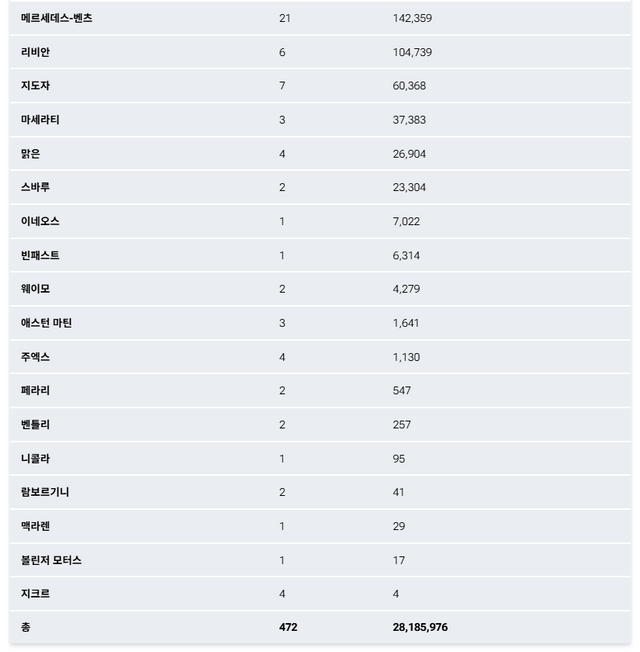 현대차와 제네시스는 21건, 107만 8,212대였다. 현대차기아를 그룹으로 묶을 경우 리콜은 34건, 260만 대를 넘어서며 순위는 4위 수준이 된다. 그러나 어떤 기준으로 봐도 포드와의 격차는 크다.