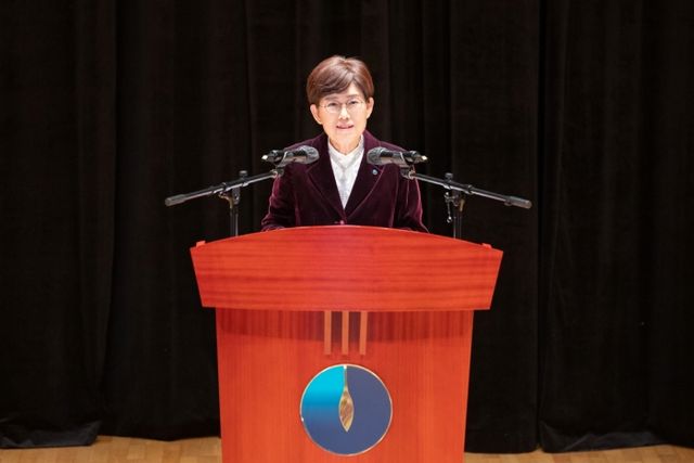 최연혜 가스공사 사장이 신년사를 발표하고 있다. 사진=한국가스공사 제공