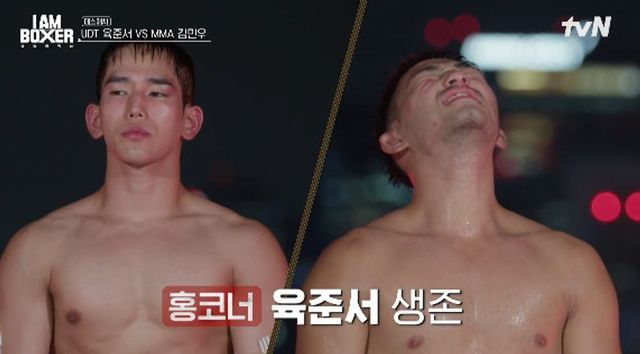 마지막 생존 기회를 두고 UDT의 육준서와 MMA 김민우가 대결을 펼쳤다. 타이어에 발을 묶고 하는 대결이기에 상대의 펀치를 피할 곳은 없었다.