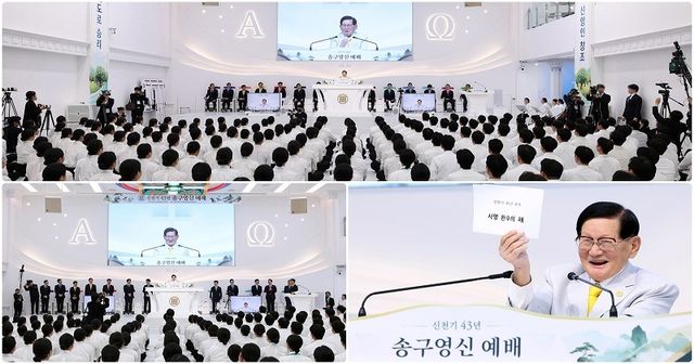 이 총회장은 “성경적 송구영신은 세상의 기준처럼 단순히 한 해를 보내고 새로운 해를 맞이하는 게 아니다”라며 “종교적으로 한 시대를 보내고 새 시대를 맞이하는 것이 송구영신이고 하나님의 입장에서는 이것이 더 큰 것”이다. “계시록 6장에 해달별이 떨어짐으로 한 시대가 끝났고, 계시록 7장에 인을 쳐서 12지파를 창조하며 새 시대가 시작된 것”이라며 “계 7장에 인 맞은 12지파가 세상에 나타났으니 송구영신 호시절이 온 것”이라고 덧붙였다.