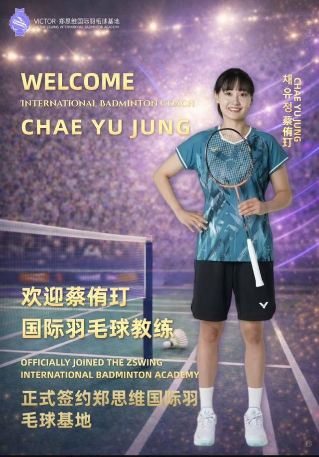 배드민턴 전문매체 '배드민턴블라블라'는 1일(한국시간) 사회관계망서비스(SNS) 계정을 통해 "혼합 복식 세계 챔피언 출신 채유정이 배드민턴 코치가 돼 정쓰웨이가 설립한 '빅터 Z스윙 아카데미에 합류했다"라고 발표했다.