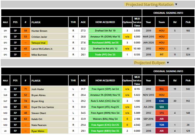 미국 현지 야구 통계·분석 매체 '팬그래프'가 운영하는 로스터 리소스(뎁스 차트)에 따르면, 휴스턴은 이번 오프시즌 동안 선발 자원 풀을 넓히는 데 초점을 맞췄다.