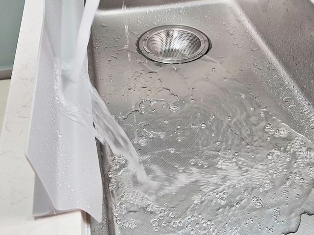 싱크볼 안으로 물이 쏙 들어갑니다.