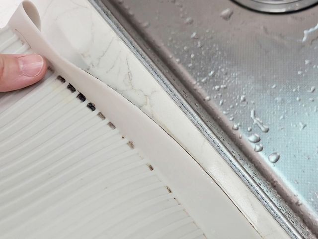 기존 물막이는 접합부에 물때와 곰팡이가 생겨서