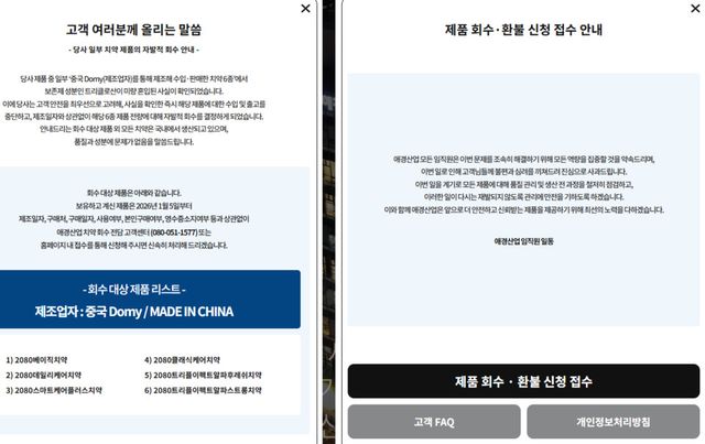 이와 관련, 해당 제품을 보유한 소비자는 제조일자, 구매처, 구매일자, 사용 여부 등과 상관없이 애경산업 치약 회수 전담 고객센터 또는 홈페이지로 신청하면 전액 환불받을 수 있다.
