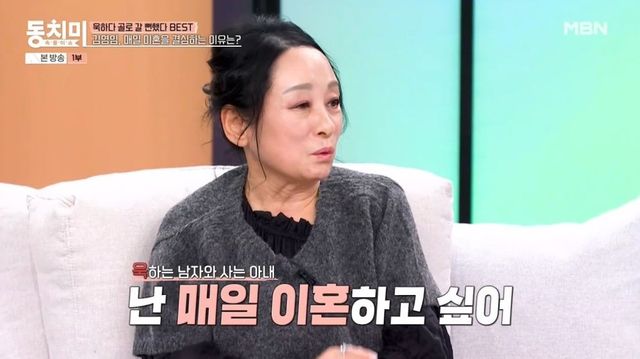 이날 김영임은 남편 이상해에 대해 “매일 이혼하고 싶다. 이혼하자고 한 지 오래됐다”며 입을 뗐다. 김영임은 “남편이랑 차를 타고 가다가 파출소에 내리더라”라며 “따라갔더니 남편이 ‘우리 이혼하러 왔다’ 하더라. 거기서 초토화가 됐다”고 했다.