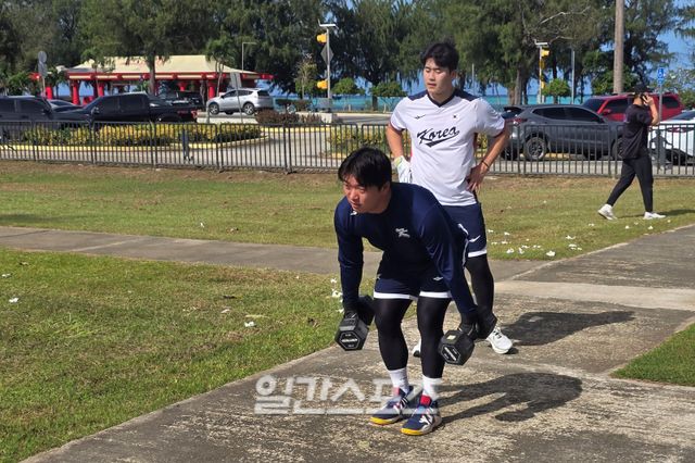 이곳에서 박영현은 고우석과 짝을 맞춰 훈련을 진행하고 있다. 지난 10일 첫날부터 웨이트 훈련을 함께 진행한 두 선수는 이어진 캐치볼 훈련까지 함께 하며 많은 이야기를 나누고 있다.