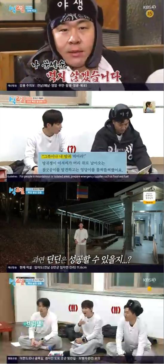 11일 방송된 KBS 2TV '1박 2일 시즌4'에서는 김종민, 문세윤, 이준, 딘딘, 유선호가 춘천 여행을 즐기는 모습이 전파를 탔다.