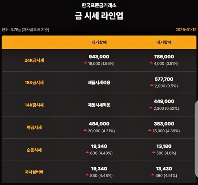 전문가들에 따르면 이날 국내 금가격이 가파른 상승세를 나타내는 원인은 국제 현·선물 금시세가 온스당 4600달러를 돌파하며 역대 최고치(각각 4601달러, 4612달러)를 경신했기 때문이다.