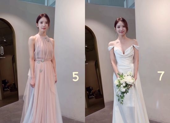 영상 속에는 1번부터 9번까지 여러 디자인의 드레스들이 담겨 있다. 어떤 드레스든 완벽하게 소화하는 김지영의 외모가 감탄을 자아낸다.