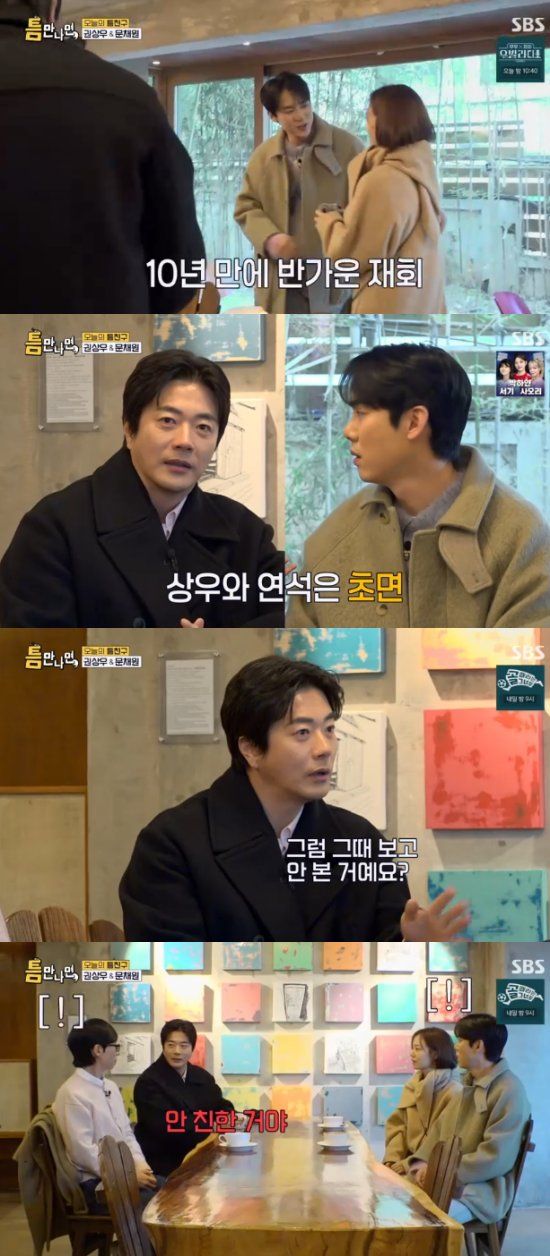 권상우와 유연석은 이날 정식으로 만난 건 처음이었다고. 권상우는 "(유연석과는) 스치듯 만나서 인사를 한 것이 전부"라면서 반가워했다. 이어 권상우는 10년 만에 처음 만나는 유연석과 문채원에게 "둘이 그때 보고 안 본거야? 그럼 안 친한거네"라고 돌직구를 던졌다.