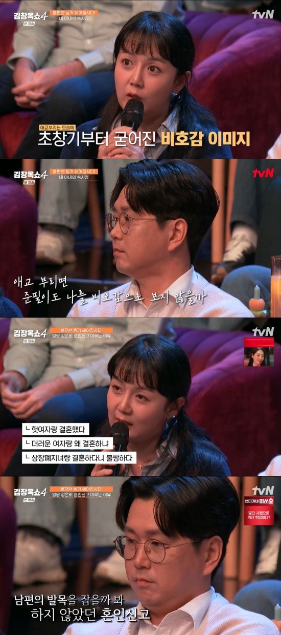 이날 강은비는 남편에게 '여보, 자기'라는 호칭 없이 무뚝뚝하게 이름만 부르는 이유에 대해 "제가 애교가 없다. 사실 학창 시절에 친구들에게 그렇게 예쁨을 받지 않았다. 늘 혼자였고 왕따를 심하게 당했다. 어느 정도였나면 맞아서 귀 고막이 터질 정도였다. 지금도 한쪽이 인공 고막이다"라고 고백해 충격을 자아냈다.