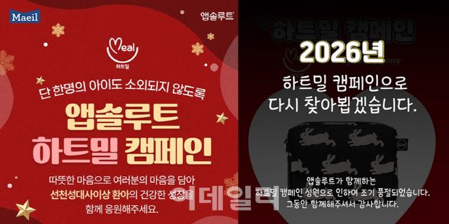 매일유업 관계자는 “이번 선천성대사이상 환아들을 위한 앱솔루트 하트밀 캠페인 굿즈의 조기 완판은 요즘 소비자들이 일상 속에서 누군가를 응원하기 위한 가치소비에 관심이 높고, 적극적으로 동참하고 있다는 것을 보여준다”며 “앞으로도 기업의 사회적 책임을 다하며, 소비자와 함께 완성할 수 있는 공익적인 활동들을 지속해 나갈 것”이라고 말했다.