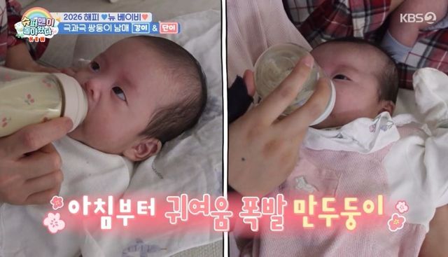 이후 임라라, 손민수 부부는 새해 첫 끼 수유를 위해 나란히 앉아 수유를 했다. 두 사람은 “분유 한 통 먹는데 2일 반 정도”라고 했고, 이를 들은 랄랄은 “보통 일주일은 먹는데”라고 놀랐다.