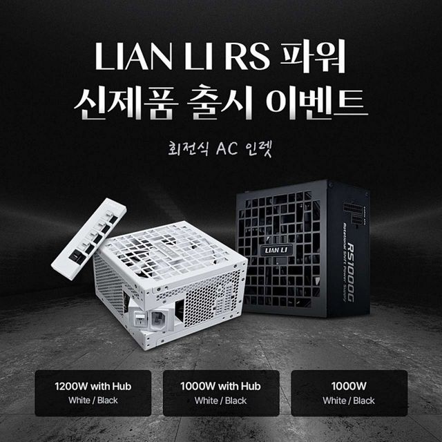 서린씨앤아이는 컴퓨존에서 LIAN LI RS 시리즈 파워서플라이 구매 이벤트를 진행한다고 밝혔다. 이벤트는 RS1200G와 RS1000G 기반 3종을 대상으로 운영되며, 1000W와 1200W 출력 구성과 블랙·화이트 색상 선택을 포함한다. 일부 모델은 RS Hub 포함 구성으로 제공된다.