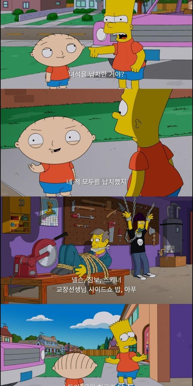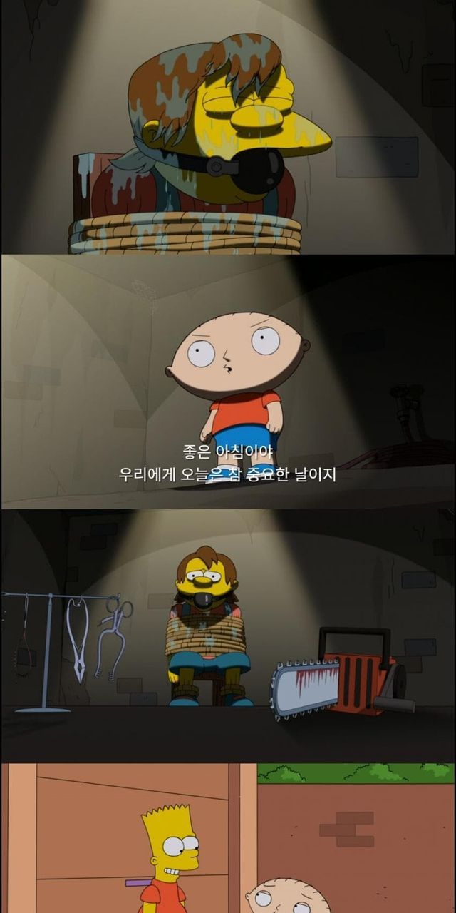 후배인 패밀리가이 악동 스튜이 보고 벌벌 떠는 바트
