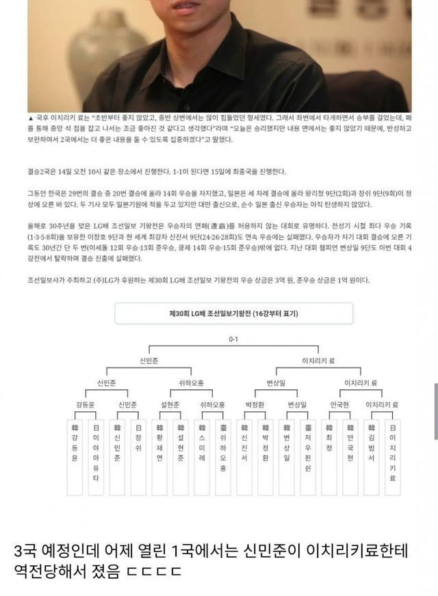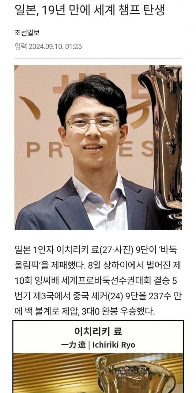 이치리키료는 현재 일본 바둑계 대표하는 원탑 강자라고 함 인기도 많음
