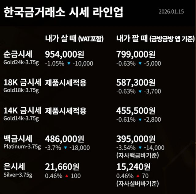 전날 밤 국제 금시세가 역사적 고점을 경신함에 따라 단기간에 급등한 가격에 대한 경계 심리가 시장 전반에 확산됐다. 과열된 시장 환경에서 가격이 일정 부분 하락하며 안정을 찾는 조정 국면이 시작된 것이 국내 금시세 하락의 배경이 됐다.