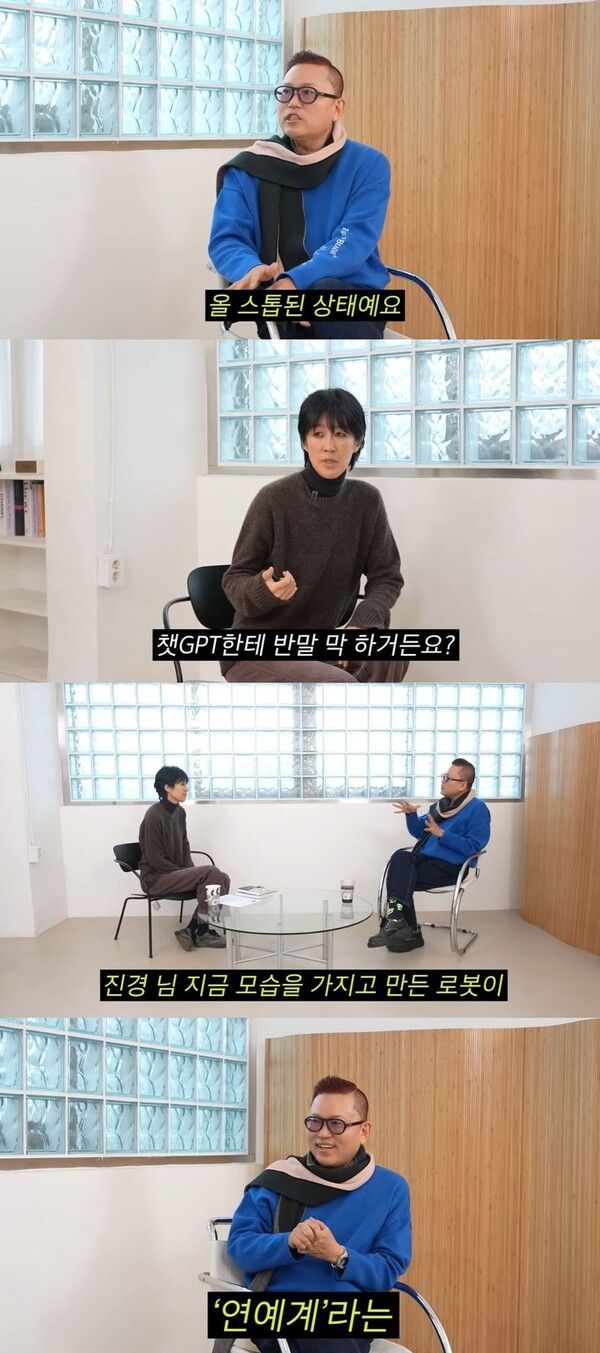 홍진경이 "전 챗지피티(ChatGPT)한테 반말한다"고 하자 김 교수는 "혹시라도 나중에 인공지능이 세상을 지배할까봐 전 존댓말을 쓴다"고 말했다.