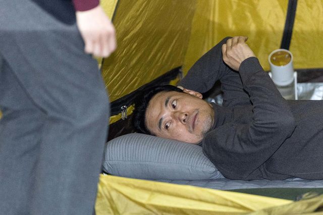 더불어민주당의 통일교 및 공천뇌물 특검 수용을 촉구하며 4일째 단식을 이어가고 있는 장동혁 국민의힘 대표가 18일 서울 여의도 국회 로텐더홀에 자리한 텐트에 누워있다. / 뉴스1
