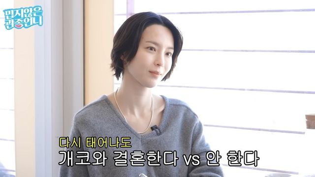 이지혜가 “그러면 개코를 빼고 스타와 결혼을 한다, 안 한다로 바꾸겠다”고 다시 묻자 “나는 사트와는 결혼 안 한다. 스타의 와이프로 사는 게 되게 힘들다”고 답했다.