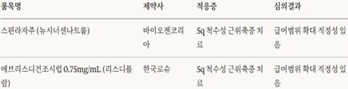 두 약제 모두 위험분담계약을 통해 급여가 적용되고 있으며, 이번 결정으로 더 많은 환자들이 건강보험 혜택을 받을 수 있게 될 전망이다.