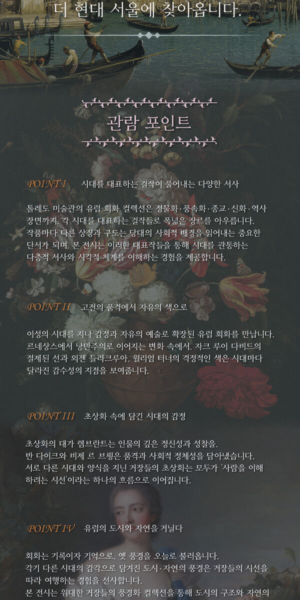 기획사 측은 “미술사적 가치가 높은 거장들의 작품을 통해 유럽 회화의 깊이와 정수를 조망하는 자리가 될 것”이라며 “국내 미술 애호가들에게 유럽 예술의 결정적 순간을 선사하고자 한다”고 전했다.