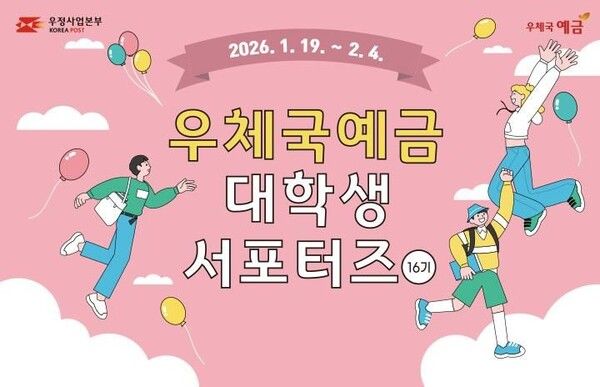 과학기술정보통신부 우정사업본부는 다음달 4일까지 전국 대학생을 대상으로 ‘2026년도 제16기 우체국예금 대학생 서포터즈’를 모집한다고 19일 밝혔다.