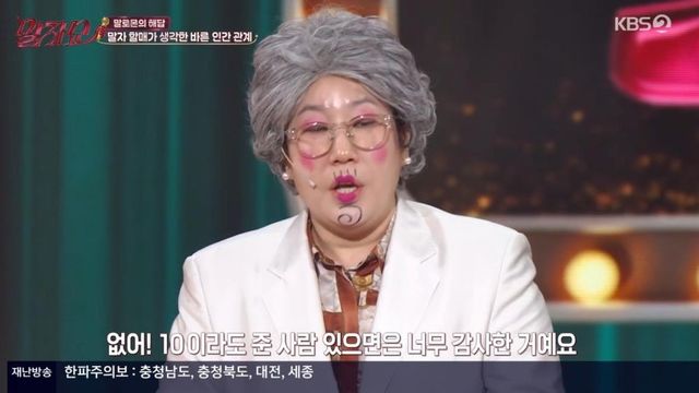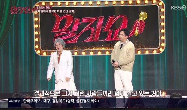 19일 방송된 KBS2 예능 프로그램 ‘말자쇼’에서는 ‘소통왕 말자 할매’ 김영희가 촌철살인의 입담으로 관객들의 고민 타파에 나섰다.